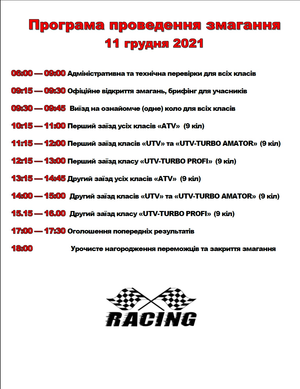 «UTV» – учасники від 16 років, беруть участь квадроцикли типу side-by-side до 1200 сс включно, без турбіни в заводській комплектації (2х4, 4х4, механічна КПП або варіатор)