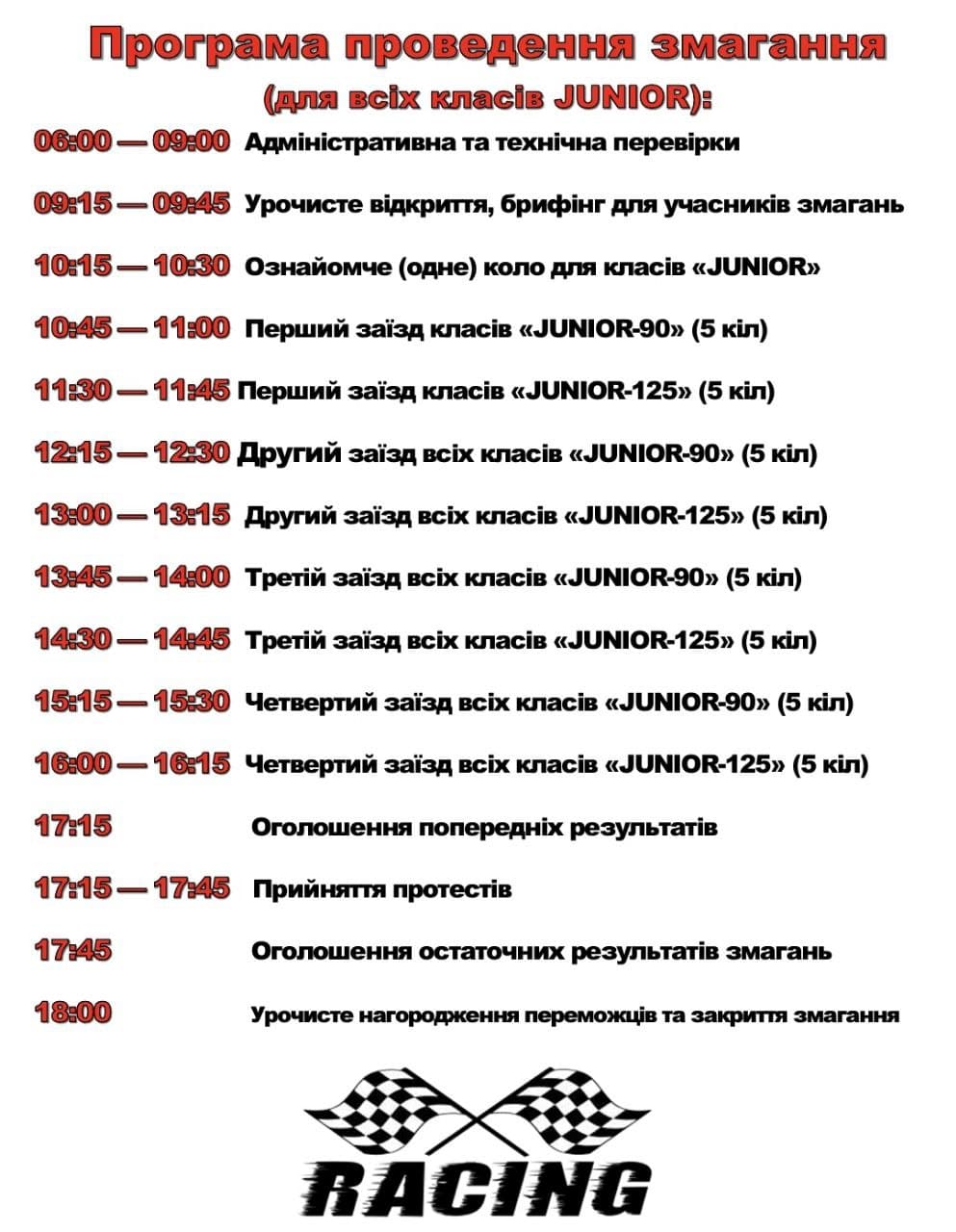 Увага! Заїзди в класі JUNIOR відбудуться за умови наявності 6 и більше учасників!